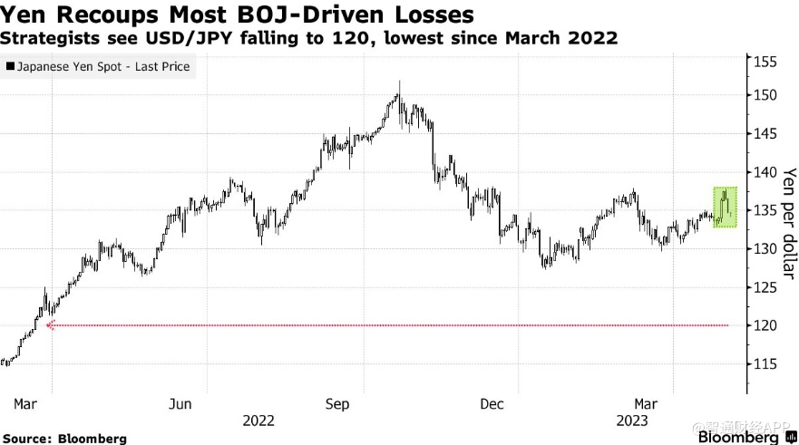 法国农业信贷银行表示,对美国银行业不断升温的担忧被视为对日元的又一提振因素。该行预计,到年底,日元兑美元汇率将升至1美元兑122日元。法国农业信贷银行策略师David Forrester表示:“日本银行被视为美国银行的另一个避风港,因为日本央行的收益率曲线控制政策保护了它们对全球利率上升的风险敞口。”