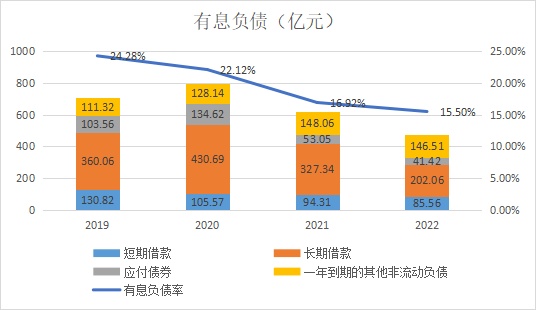 注:有息负债包括短长期借款、应付债券及一年到期的其他非流动负债