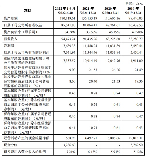 财务方面,2019年度、2020年度、2021年度及2022年1-6月,金帝股份分别实现营业收入约5.33亿元、6.32亿元、9.14亿元、5.45亿元人民币;净利润分别为5450.44万元、约1.10亿元、约1.15亿元、7639.33万元人民币。