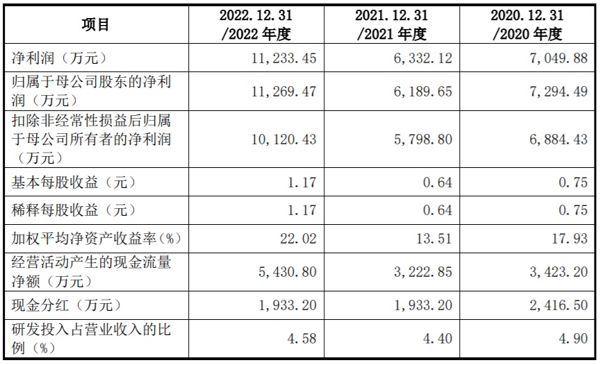 财务方面,报告期内公司实现营业收入约5.29亿元、7.18亿元和8.90亿元,实现归母净利润7294.49万元、6189.65万元和1.13亿元,2022年度公司各类弹簧产品销售数量已达8000多万件,公司业务规模相对较大,经营业绩稳中有升。