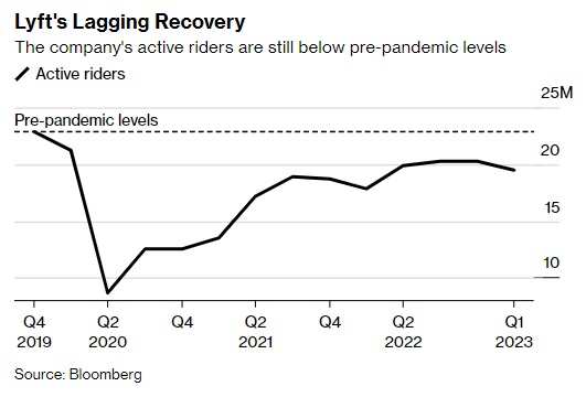 该公司第一季度的活跃乘客数为1960万,低于分析师预期的1980万。尽管这一数字同比增长了近10%,但仍落后于Lyft在疫情前拥有的2290万。