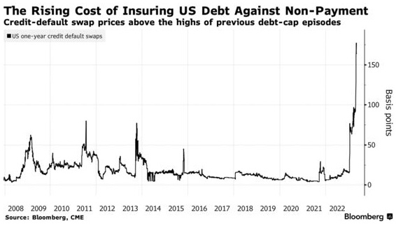 与此同时,美国主权信用违约掉期(CDS)最近几周也出现飙升,甚至超过了2011年债务上限危机期间的水平。