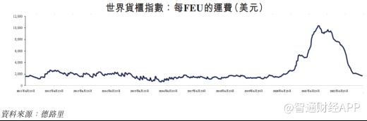 德路里发布的世界货柜运价指数于2021年9月达到每FEU 10,377.2美元的高峰。自达到高峰后,因需求增长减缓、供应链中断和港口拥塞问题有所缓解,有效运力增加,从而使运费开始持续下滑。鉴于2023年的宏观经济前景疲弱,运费持续面临下行压力。