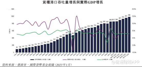 此外,全球货柜港口吞吐量保持平稳增加,为公司提供了增量市场。根据国际货币基金组织2023年4月的估计,全球经济预计将于2023年、2024年、2025年、2026年及2027年分别增长2.8%、3.0%、3.2%、3.2%及3.1%。货柜港口吞吐量与实际GDP增长高度相关。根据德路里于2023年第一季公布的货柜预测报告,预计2022年至2027年世界货柜港口吞吐量将以2.8%的复合年增长率增长。