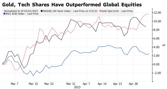 他们写道:“美国银行业危机增加了对黄金的需求,作为实际利率较低的代表,以及对冲‘灾难性情景’的工具。”
