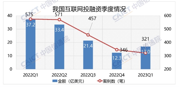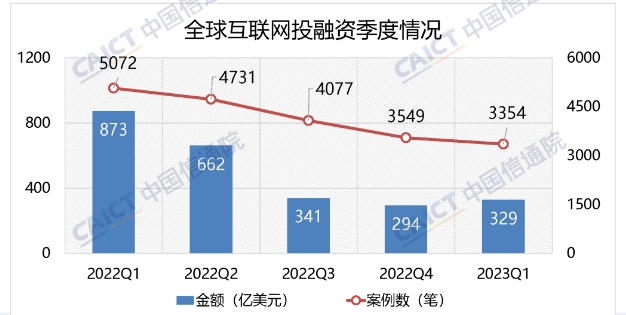 智通财经APP获悉,5月6日,中国信通院发布《2023年一季度互联网投融资运行情况》。数据显示,我国互联网投融资略有反弹。2023Q1,我国互联网投融资案例数环比下跌7.2%,同比下跌44.2%;披露的金额环比上涨37.8%,同比下跌54.4%。