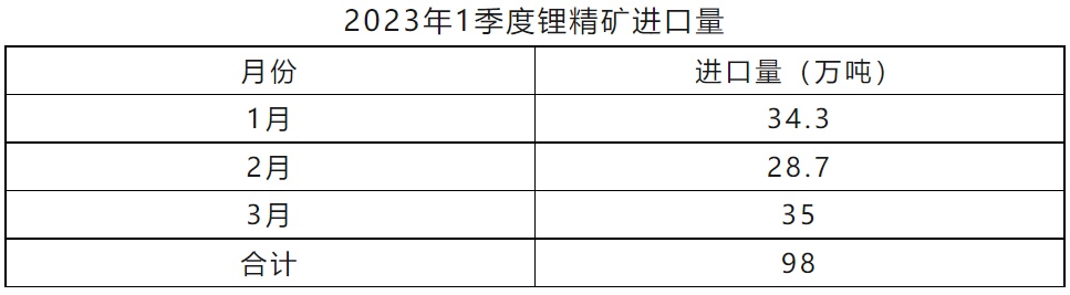 智通财经APP获悉,5月7日,中国有色金属工业协会锂业分会发文表示,据海关数据统计,2023年1-3月,我国锂精矿进口量98万吨,主要来源于澳大利亚、巴西、津巴布韦等国,同比增长约85%。碳酸锂进口量3.90万吨,出口量0.30万吨,净进口量3.60万吨。