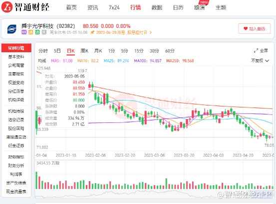 截至5月5日收盘,舜宇光学科技(02382)股价为80.55港元,已经连续半个月处于下跌通道。目前公司股价已经回落到2022年11月、疫情防控全面放开前的水平,这半年时间来的涨涨跌跌可以说“涨了个寂寞”。