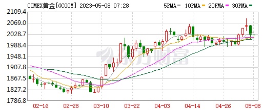 黄金价格方面,5月以来,国际现货黄金价格由每盎司(1盎司黄金约为31.1035克)1990美元一路上升,5月4日盘中创下每盎司2081.82美元的历史新高。