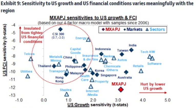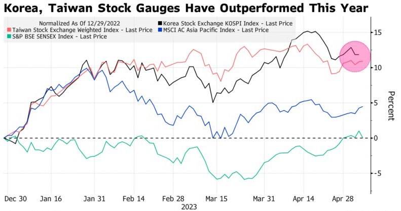 韩国和中国台湾股市今年迄今表现优于多数亚洲股市,但现在面临落后的风险。这是因为,作为台积电(TSM.US)和三星电子的最大市场,美国正面临经济增长放缓、银行业动荡和债务上限僵局。即便如此,区域性科技股仍将从较低的利率中受益。高盛称,中国台湾和信息技术行业对美国的金融状况和经济增长比除日本以外的亚太地区大多数地区更为敏感。