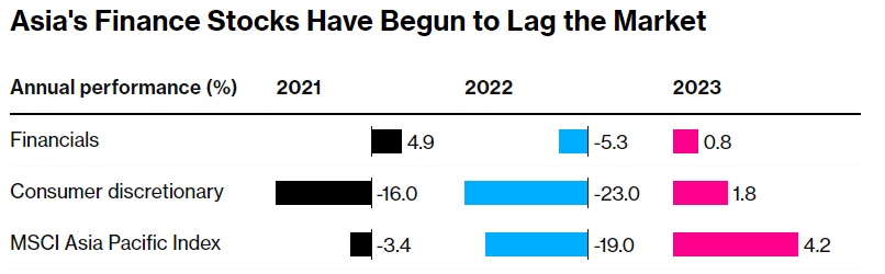 另一方面,随着美联储紧缩周期接近尾声,澳大利亚国民银行和星展集团等银行正面临越来越大的利润率压力。这可能会结束金融板块两年以来优于消费股和亚太地区多数其它行业的表现。在板块选择中,基金正倾向于消费类股,因预期当地需求强劲且中国经济复苏。景顺分析师David Chao表示,在美联储宣布加息之前,必须消费行业是挺过波动的好选择。