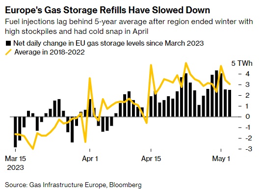 据欧洲最大的天然气供应商挪威能源巨头Equinor ASA称,对价格进一步下跌的预期意味着一些欧洲国家的储气罐补充可能会减少。