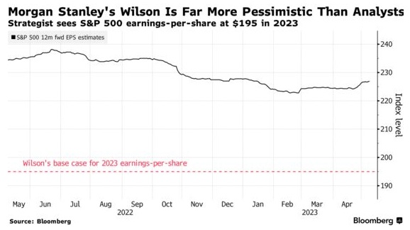 尽管如此,这位策略师承认,如果经济数据改善,普遍预期的盈利复苏可能会实现,从而降低了他对2023年每股收益低于195美元的基本预测的可能性。