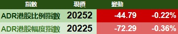 智通财经APP获悉,周一,美股三大指数涨跌不一,港股ADR指数下跌,按比例计算,收报20252点,较香港收市下跌44.79点或0.22%。