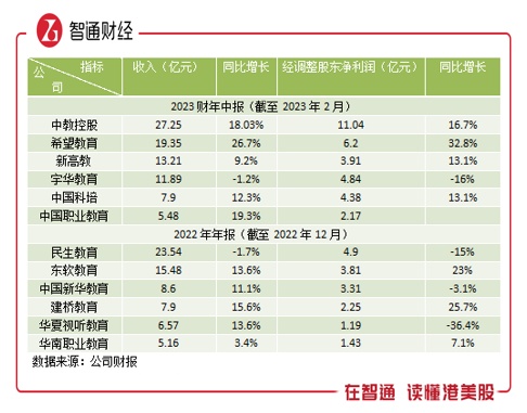 所以在今年3-4月份,各大教育机构部分发布年报,而也有部分发布中报,中教控股和希望教育属于第二类。从业绩看,年报及中报标的大都表现了强劲的增长,收入及净利润基本呈双位数的增速,当然也有拖后腿的,比如宇华教育及民生教育,收入微跌,但净利润分别下滑16%及15%。