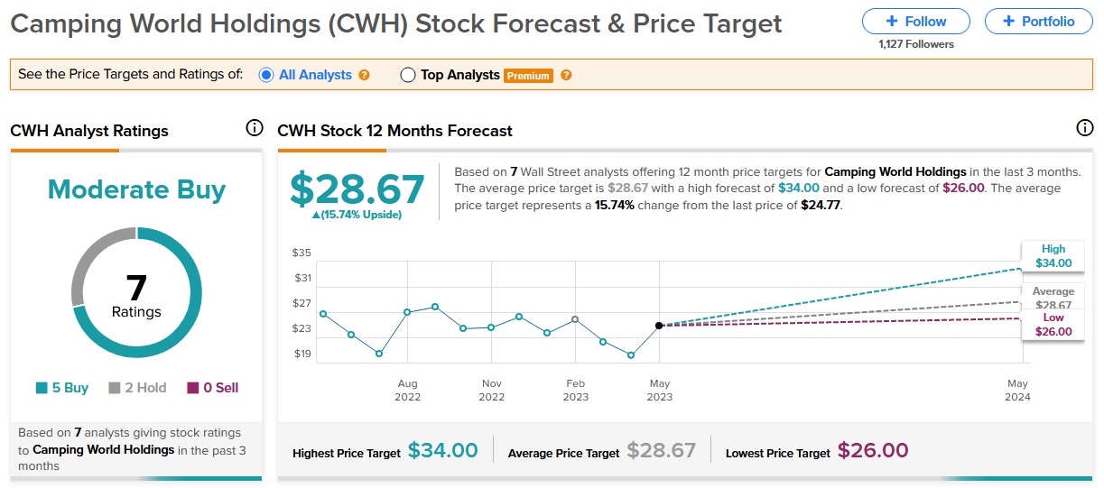 在Baird分析师Craig Kennison看来,露营世界随着市场趋势和需求而变化的能力令人印象深刻。分析师表示:“二手房车销售的增长推动了该公司息税折旧摊销前利润预期的上升。二手房车市场这为消费者提供了更实惠的选择,也为该公司提供了更大的潜在市场。此外,该公司管理层还暗示,在2023年已经达成的几笔交易的基础上,将进入积极的经销商整合阶段。尽管投资者的情绪尚未转向积极,但我们认为,露营世界继续支付股息对耐心的投资者来说是有价值的。”