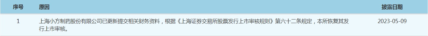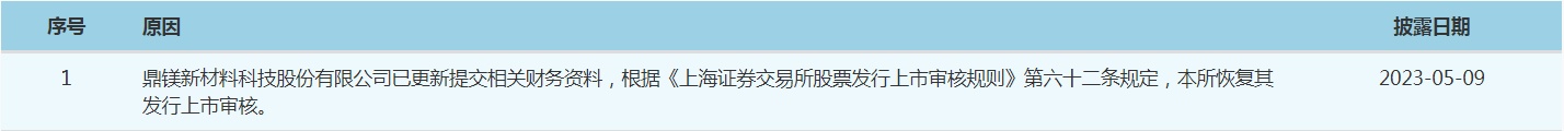 智通财经APP获悉,5月9日,因已更新提交相关财务资料,根据《上海证券交易所股票发行上市审核规则》第六十二条规定,上交所恢复浙江斯普智能科技股份有限公司(斯普智能)、上海小方制药股份有限公司(小方制药)、鼎镁新材料科技股份有限公司(鼎镁科技)上市审核。