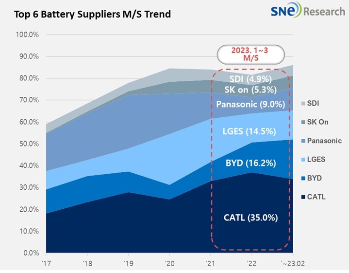 (来源:2023年4月全球电动车和电池月度跟踪报告,SNE Research)