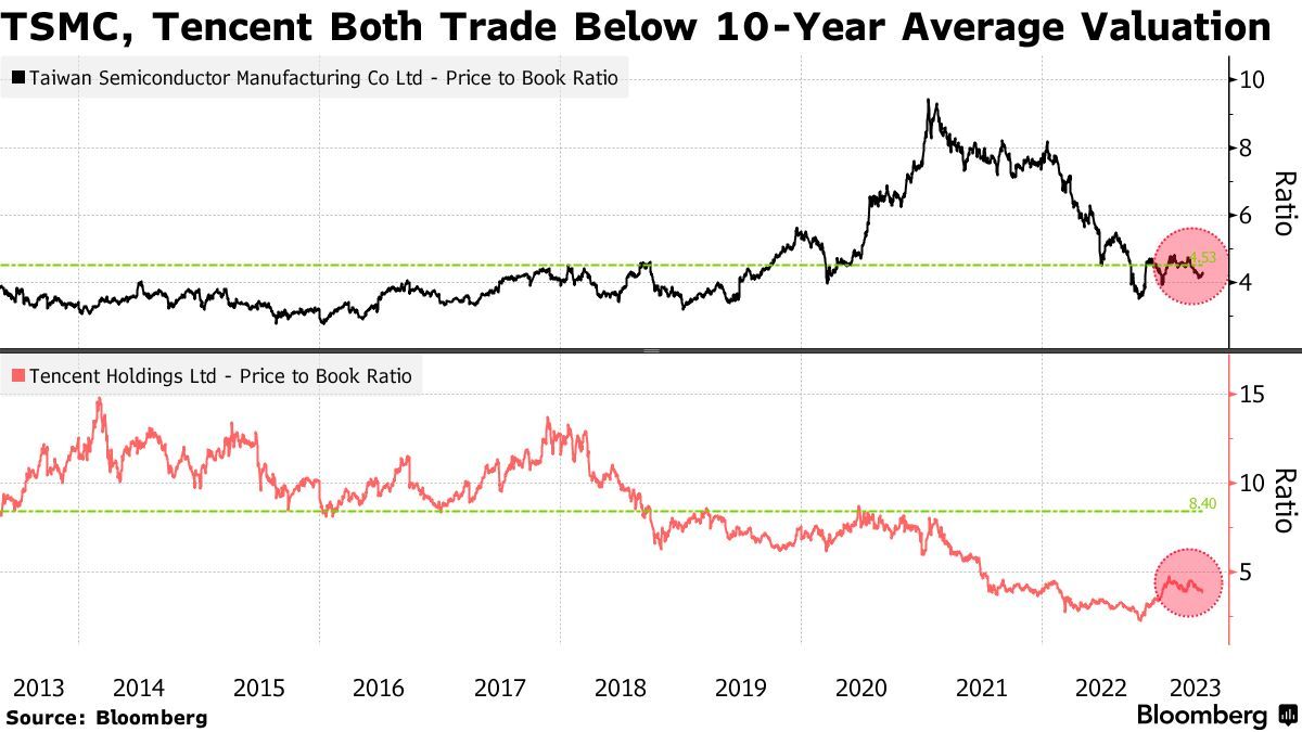 派恩斯管理的上述基金在过去三年里的表现超过了高达88%同行,现在已不再持有台积电或腾讯的股份。这位来自知名资管巨头Federated Hermes的基金经理在接受采访时表示,该机构在去年年底,以及2023年初退出了这两只股票的最后一批持有仓位。在他发表上述言论之际,这两只股票的估值都低于10年期的平均水平。