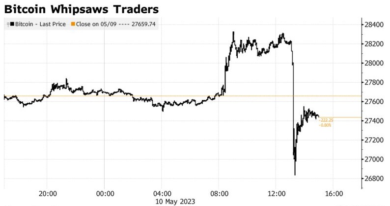智通财经APP获悉,最大的加密货币比特币在两周多以来首次短暂跌破2.7万美元,人们担心机构做市商的参与度下降将引发更剧烈的价格波动。周三美股盘中,比特币在几分钟内一度暴跌约5%;截至收盘,比特币微跌0.4%,报27535.9美元。过去一个月,比特币一度突破约2.7万美元至3万美元区间的低端。