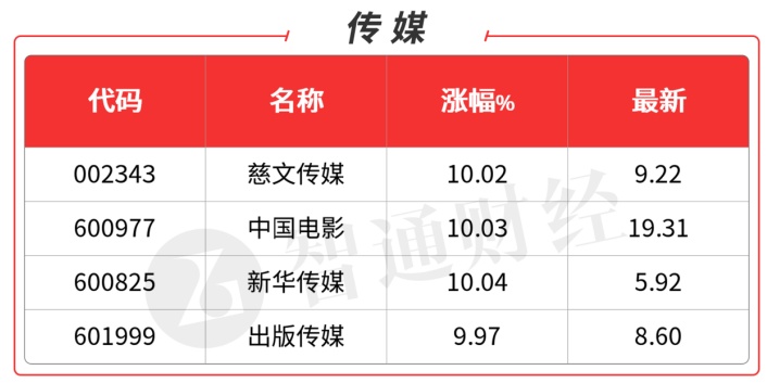 AI大方向分歧依旧明显,像算力、数据、大模型等其余细分仍相对偏弱,近期人气龙头鸿博股份(002229.SZ)跌停,汉王科技(002362.SZ)、中科曙光(603019.SH)等跌幅靠前。而热点则转向应用端,如AI+传媒板块,昨天提到的荣信文化(301231.SZ)20CM2连板,反复提到的引力传媒(603598.SH)4天3板,与澜舟科技签署了战略合作协议;唐德影视(300426.SZ)、华策影视(300133.SZ)、华谊兄弟(300027.SZ)均20CM涨停;新华传媒(600825.SH)、中国电影(600977.SH)、慈文传媒(002343.SZ)等均封板,涨停家数达到19家。