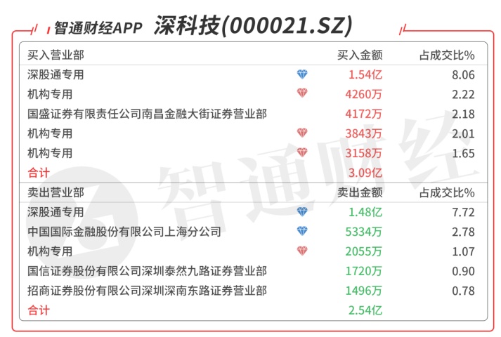 深科技(000021.SZ):受到众多机构青睐,4家机构席位出现在龙虎榜单上,合计净买入1.03亿元,深股通大单对倒买入658万元,当日净买入1.06亿元,该股调整充分,注意20日线附近的压力。