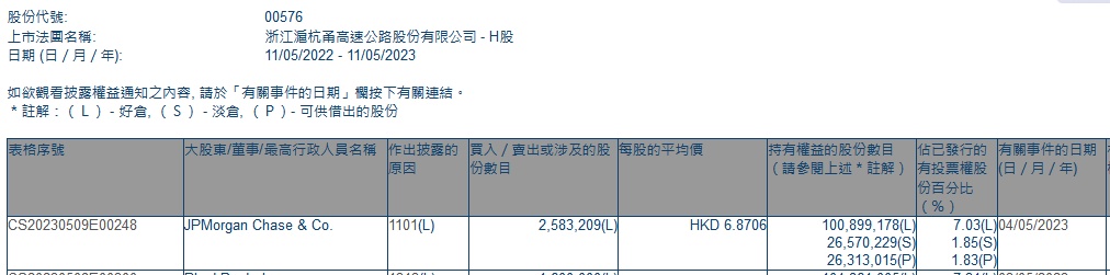 智通财经APP获悉,香港联交所最新资料显示,5月4日,小摩增持浙江沪杭甬(00576)258.3209万股,每股作价6.8706港元,总金额约为1774.82万港元。增持后其持股数目约为1.01亿股,最新持股比例为7.03%。