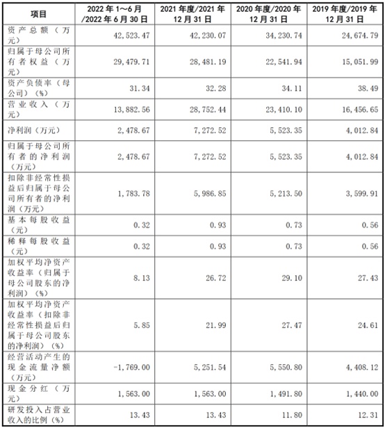 财务方面,于2019年度、2020年度及2021年度,公司实现营业收入分别约为1.65亿元、2.34亿元、2.88亿元。公司净利润分别约为4012.84万元、5523.35万元、7272.52万元人民币。