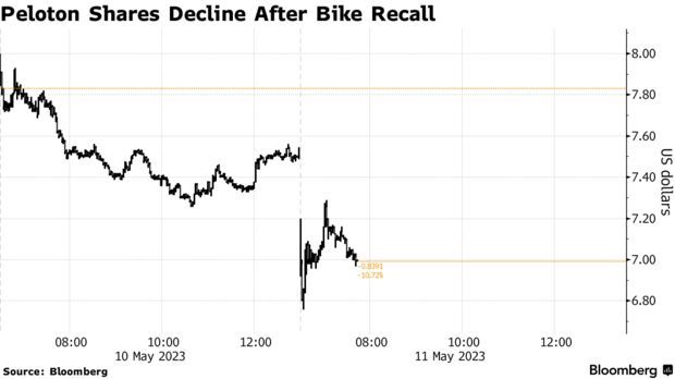 智通财经APP获悉,周四,Peloton(PTON.US)因产品座椅存在安全隐患而召回约220万辆健身自行车。受此消息影响,Peloton周四美股收跌8.9%至6.86美元,这是该股自2019年上市以来的最低收盘价。