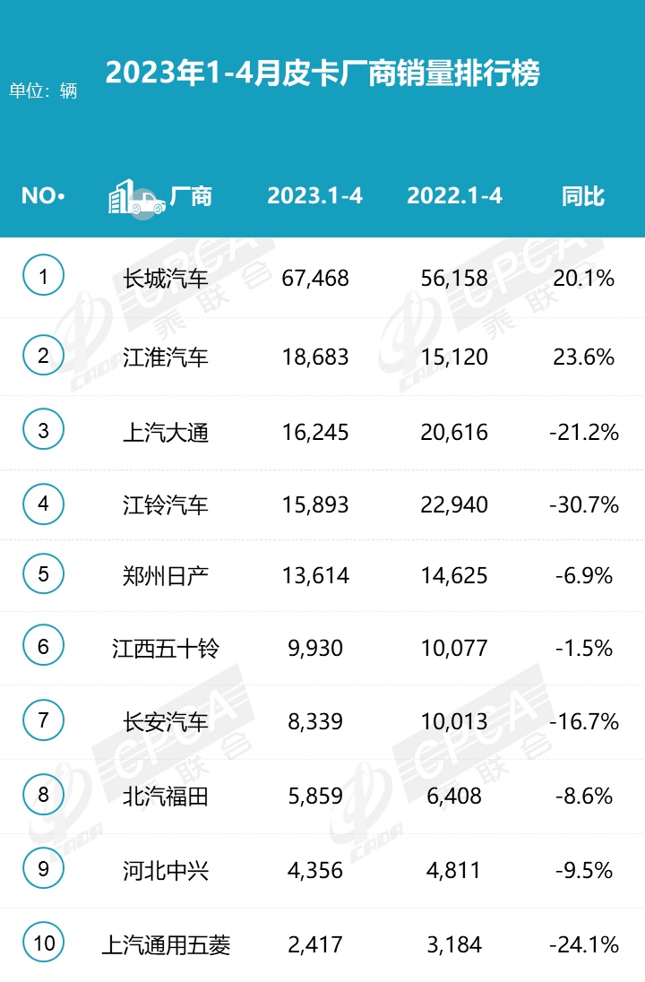 智通财经APP获悉,5月12日,根据乘联会皮卡市场信息联席会数据,2023年4月份皮卡市场销售4.2万辆,同比增长24.5%,处于近5年的中高位水平;环比下降11.2%,环比下降降幅不大。由于去年疫情下皮卡生产受阻,今年的皮卡需求形势有改善,促进了2023年皮卡的国内外销售形势好转并走强。海外需求暴增推动皮卡出口持续增长,进一步促进我国汽车行业出口外销走强的特征。