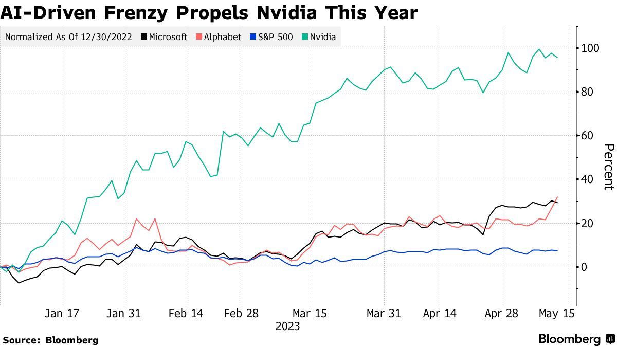 来自该机构的策略师马尼什•卡布拉(Manish Kabra)表示,看好人工智能技术开启全新时代的那些机构或散户投资者,推动英伟达(NVDA.US)的股价自今年以来涨幅高达惊人的96%。英伟达生产极度复杂人工智能计算任务所需的GPU芯片,可谓火爆全球的ChatGPT所需的最重要底层硬件。