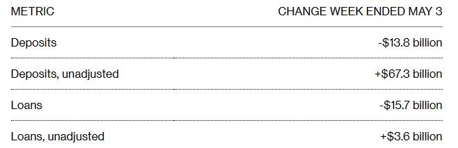 智通财经APP获悉,在5月的第一周,第一共和银行被美国联邦存款保险公司(FDIC)接管并被出售给摩根大通(JPM.US),导致市场对银行业健康状况的担忧重新升温。受此影响,美国的贷款和存款在5月第一周均略有下降。美联储周五公布的经季节调整后的数据显示,截至5月3日当周,美国商业银行的贷款减少了157亿美元,此前一周为增加了419亿美元;存款也减少了138亿美元。不过,在未经调整的基础上,贷款增加了36亿美元,存款则增加了673亿美元。