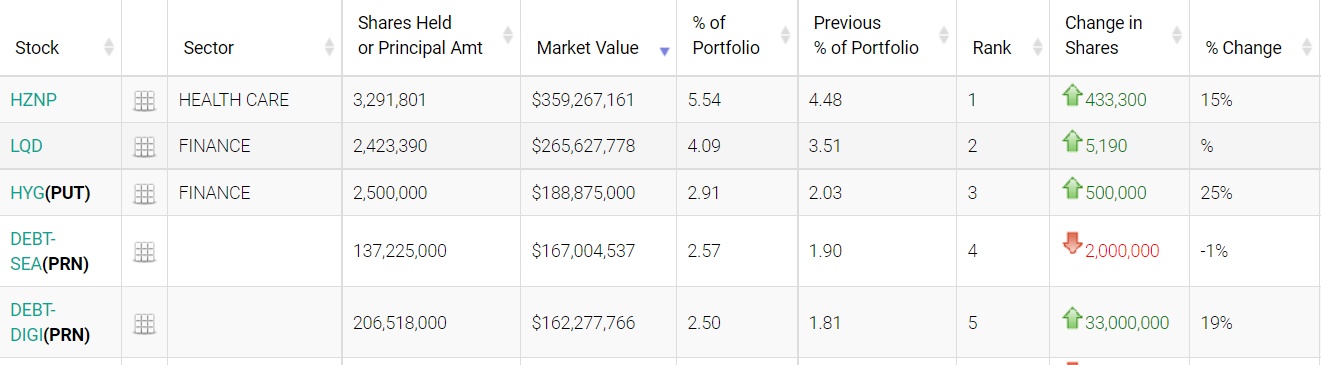 前五大重仓股中,Horizon Therapeutics(HZNP.US)位列第一,持仓市值为3.59亿美元,持股数约为329.18万股,持仓数量较上季度增加15%。