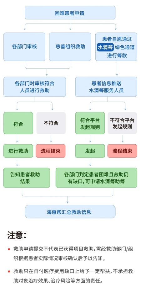 此外,患者也可以在自愿情况下,通过水滴筹“海惠帮”绿色通道发起筹款救助申请。作为国内领先的互联网大病筹款平台,水滴筹在过去几年间,已经持续为277万名大病患者筹集了569亿元医疗资金,累计4.3亿捐款人参与了救助行动。