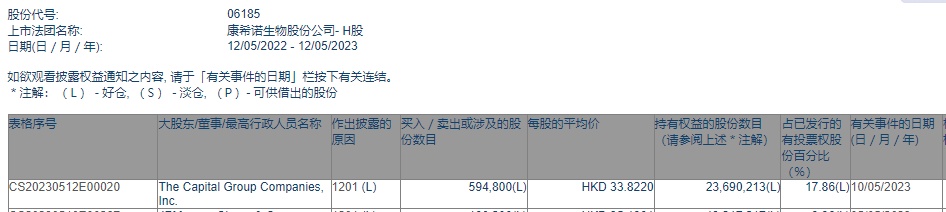 智通财经APP获悉,香港联交所最新资料显示,5月10日,美国资本集团减持康希诺生物(06185)59.48万股,每股作价33.822港元,总金额约为2011.73万港元。减持后最新持股数目约为2369.02万股,最新持股比例为17.86%。