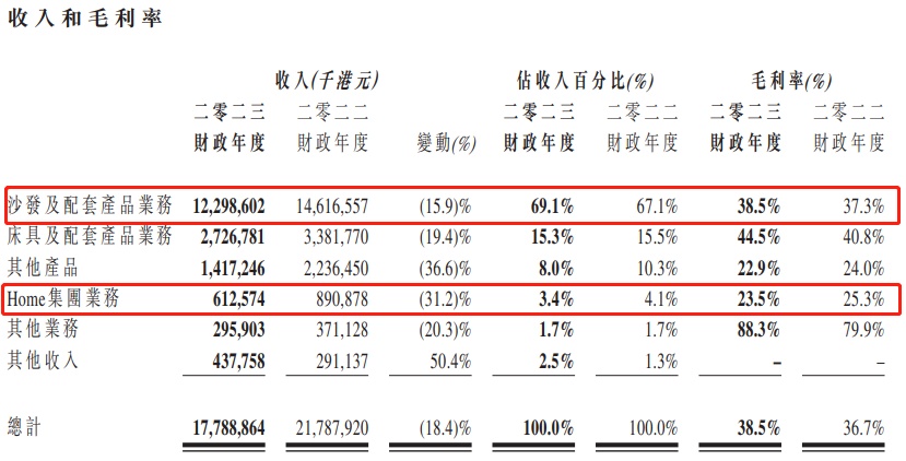 从集团业务上看,除其他收入之外,敏华控股绝大部分业务收入下降。于回顾期内,该集团床具及配套产品业务共实现收入约为27.27亿港元,较上年同期的约33.82亿港元下降约19.4%。其中,降幅最大的部分还是Home集团业务。该集团来自Home集团的收入达到约6.13亿港元,较上年同期的约8.91亿港元下降约31.2%。
