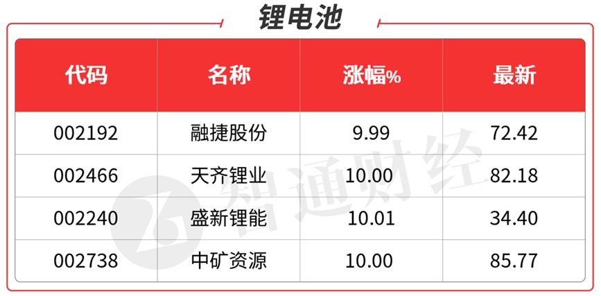 早盘光伏、储能等新能源赛道股大幅反弹,碳酸锂价格半个月涨幅近40%,先于启动的宝明科技(002992.SZ)5天4板,首板有融捷股份(002192.SZ)、天齐锂业(002466.SZ)、中矿资源(002738.SZ)等。