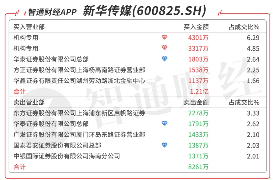 新华传媒(600825.SH):多主力现身龙虎榜,机构席位买入7618万元,买三是量化基金的席位对倒,买卖均衡,当日净买入3834万元,该股今日强势反包,预计走趋势为主。