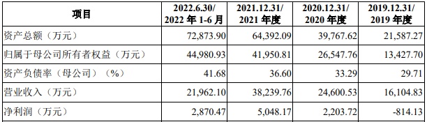 财务方面,于2019年、2020年、2021年及2022年1-6月,欧莱新材实现营业收入分别约为1.61亿元、2.46亿元、3.82亿元及2.20亿元;实现净利润分别约为-814.13万元、2203.72万元、5048.17万元及2870.47万元。