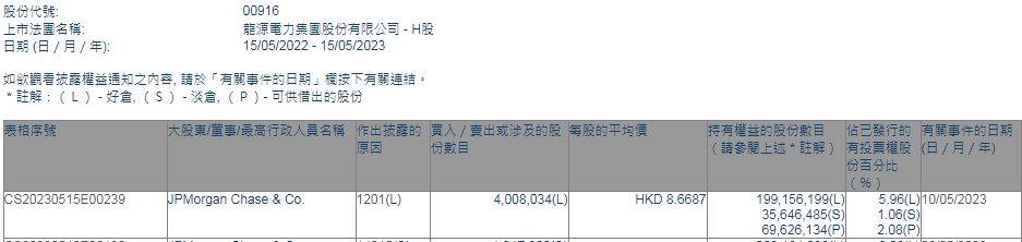 智通财经APP获悉,香港联交所最新资料显示,5月10日,小摩减持龙源电力(00916)400.8034万股,每股作价8.6687港元,总金额约为3474.44万港元。减持后最新持股数目约为1.99亿股,最新持股比例为5.96%。