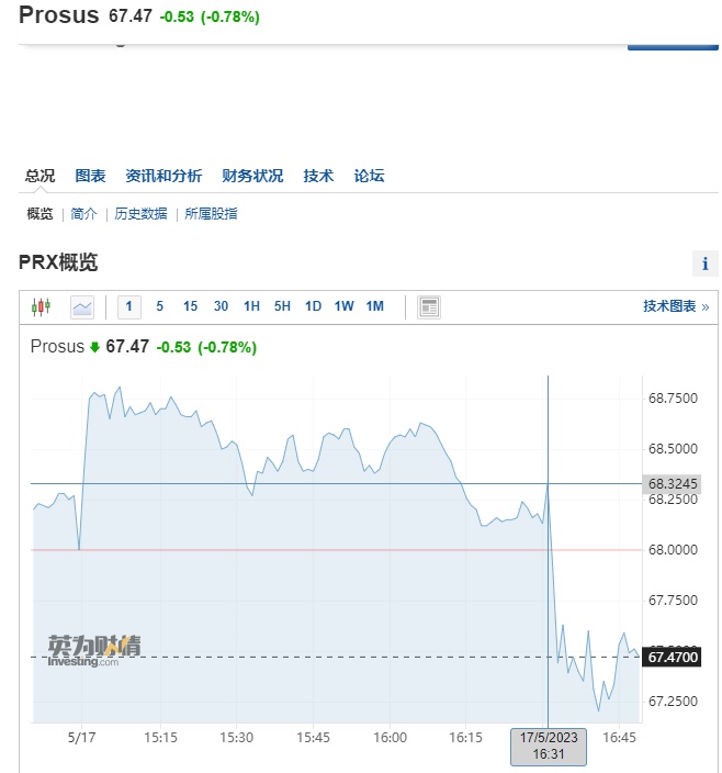 在德国法兰克福市场上,截至16:50,腾讯控股跌0.27%,报40.19欧元,折合341.29348港元,较港股收盘价342.8港元跌0.43%。在荷兰阿姆斯特丹市场上,腾讯最大股东Naspers集团旗下子公司Prosus跌0.78%,报67.47欧元。值得注意的是,在财报公布的前一分钟,腾讯及Prosus的股价还是处于微涨状态。