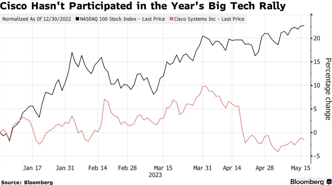 在Alphabet(GOOGL.US)和苹果(AAPL.US)等科技巨头以超过30%的涨幅带动纳斯达克100指数上涨之际,这家最大的计算机网络设备制造商却下跌了1.5%。
