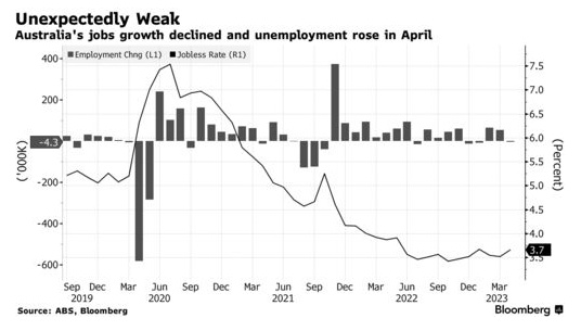 智通财经APP获悉,最新数据显示,澳大利亚企业在4月份意外裁员,失业率今年首次攀升,强化了澳洲联储在下个月的政策会议上按兵不动的理由。澳大利亚统计局周四表示,与上月相比,雇主减少了4300个职位,其中全职职位减少最多,而预期为增加25000个职位。失业率从近50年来的最低点3.5%上升至3.7%。