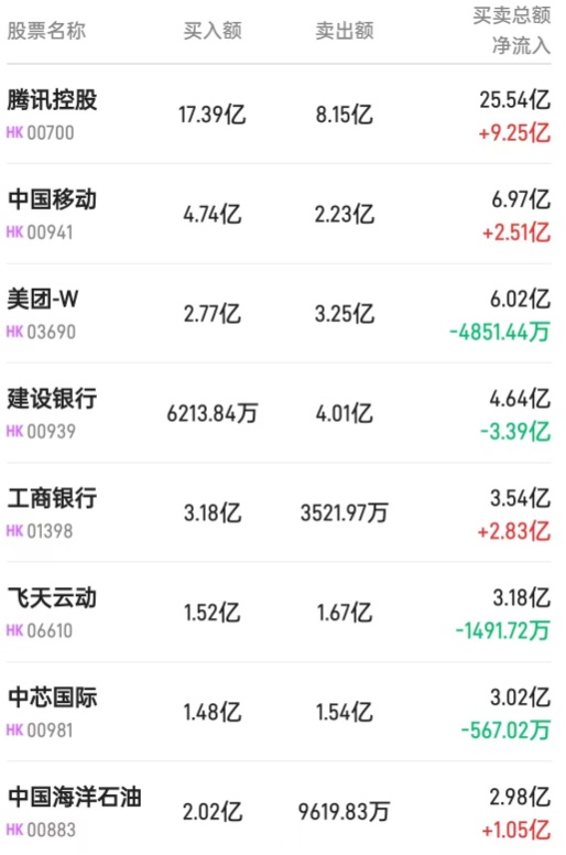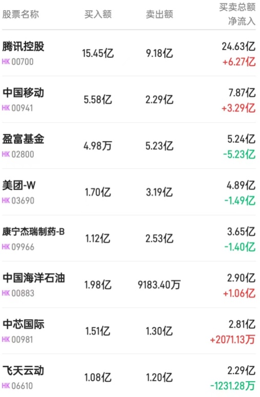 此外,盈富基金(02800)、中国人保(01339)分别遭净卖出7.5亿、9439万港元。