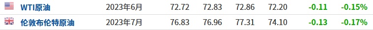 3.截至发稿,WTI原油跌0.15%,报72.72美元/桶。布伦特原油跌0.17%,报76.83美元/桶。