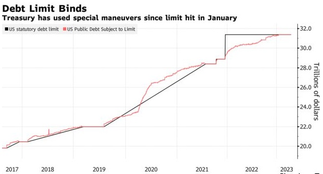 美国目前的联邦债务上限仍接近31.4万亿美元,这很危险,一旦达到这一上限,美国可能会失去履行所有支付义务的能力。美国财政部长耶伦称,这个关键时刻可能在6月1日到来。自1月中旬以来,美国财政部一直在使用所谓的非常措施来继续偿还债务,比如缩减基准国债拍卖规模。