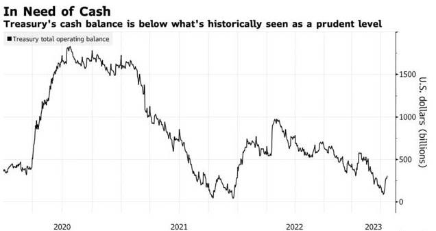 根据美国财政部的最新估计,在债务上限问题得到解决后,美国的现金储备——财政部一般账户——将从目前的950亿美元飙升至6月底的5500亿美元,并在三个月后达到6000亿美元。