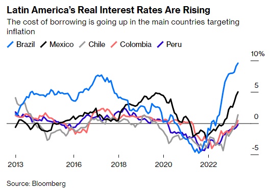 哥伦比亚、智利和秘鲁的情况目前还不太明显,因为它们的实际利率仍然很低,甚至是负值。