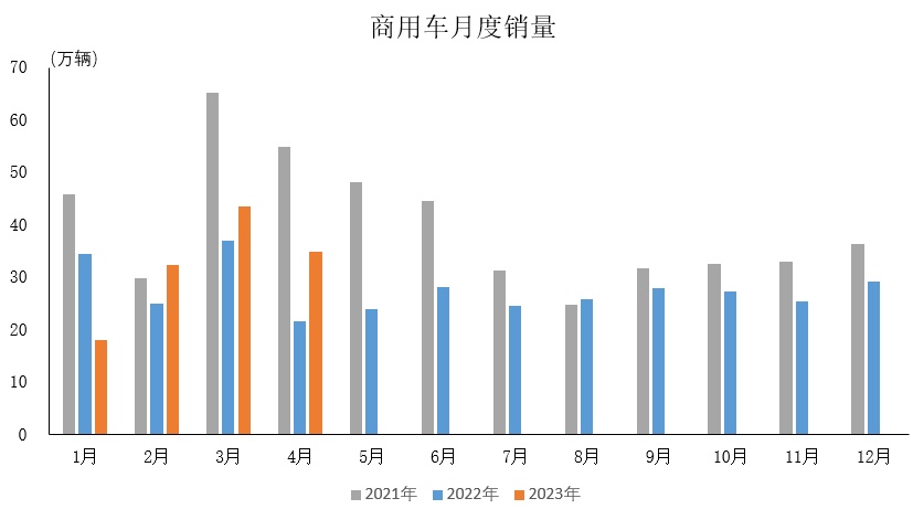 智通财经APP获悉,据中国汽车工业协会统计分析,2023年4月,商用车行业复苏速度不及预期。2023年4月,商用车产销分别完成35.5万辆和34.8万辆,环比分别下降18.4%和19.9%;同比分别增长68.8%和60.5%。2023年1-4月,商用车产销分别完成130.3万辆和128.6万辆,同比均增长8.8%。