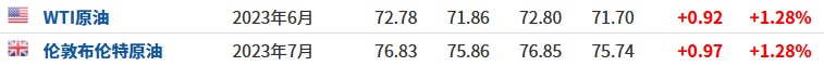 3.截至发稿,WTI原油涨1.28%,报72.78美元/桶。布伦特原油涨1.28%,报76.83美元/桶。